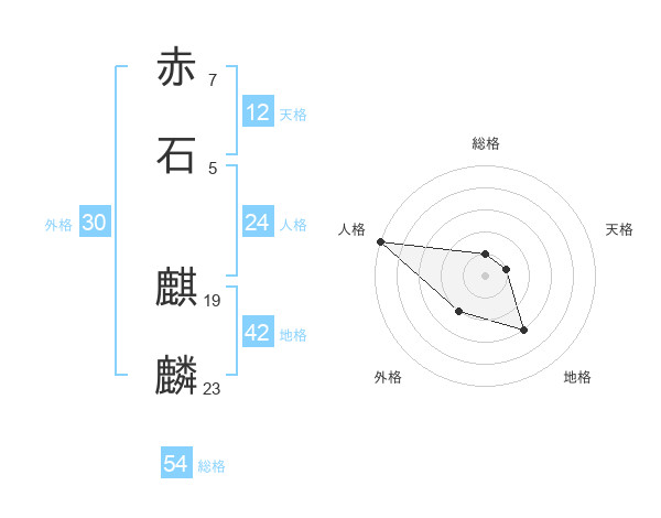 赤石 麒麟さんの総格は54画の1点!