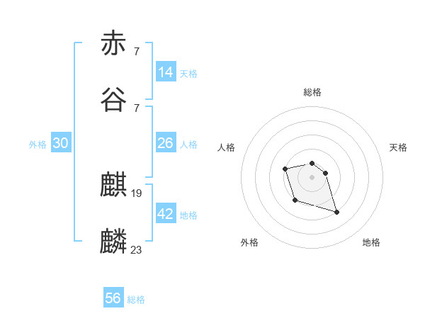 赤谷 麒麟さんの総格は56画の1点!