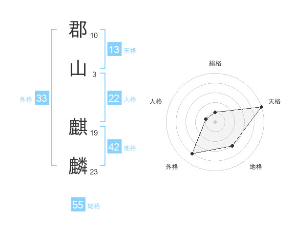 郡山 麒麟さんを姓名の画数から五運を鑑定