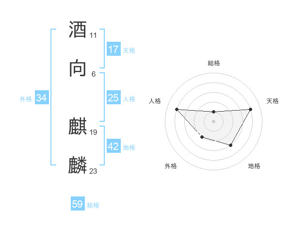酒向 麒麟さんを姓名の画数から五運を鑑定