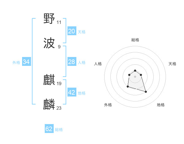 野波 麒麟さんの天格は20画の1点!