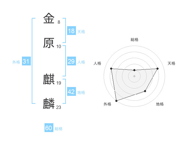 金原 麒麟さんの総格は60画の1点!