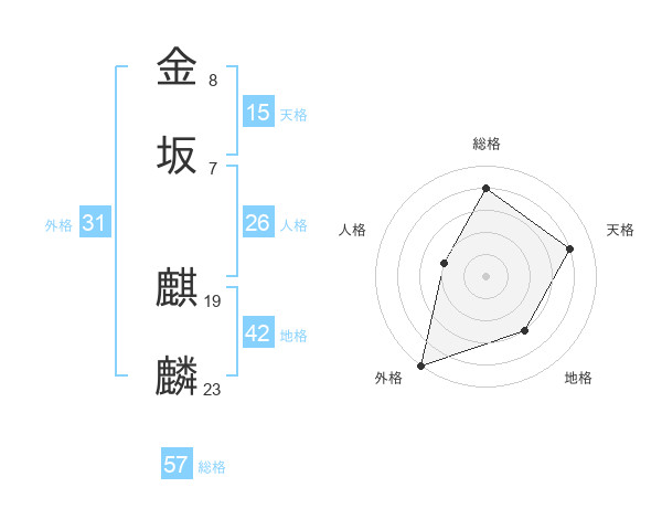 金坂 麒麟さんの総格は57画の4点!