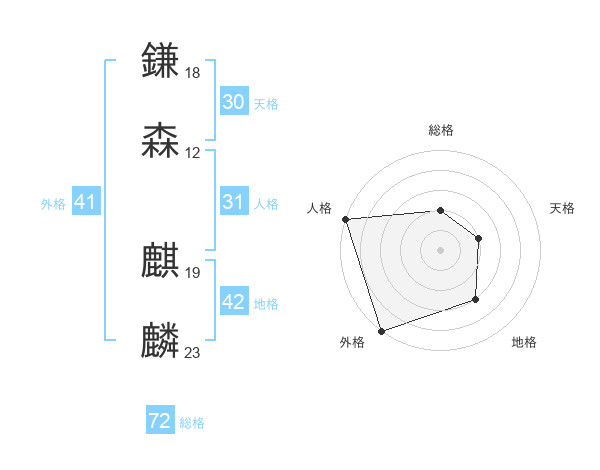 鎌森 麒麟さんの総格は72画の2点!