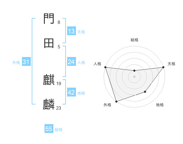 門田 麒麟さんを姓名の画数から五運を鑑定