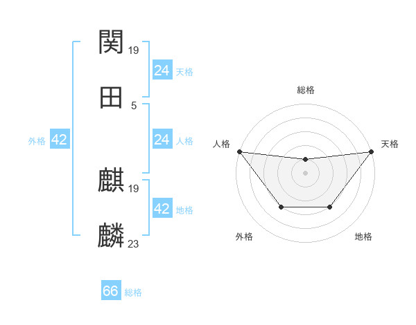 関田 麒麟さんの天格は24画の5点!