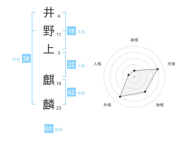 井野上 麒麟さんの総格は60画の1点!