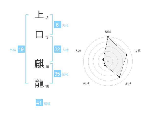 上口 麒龍さんの総格は41画の5点!