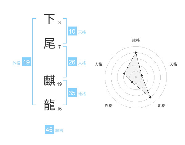 下尾 麒龍さんを姓名の画数から五運を鑑定
