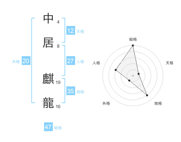 中居 麒龍さんを姓名の画数から五運を鑑定