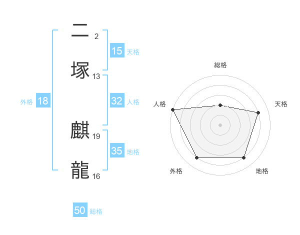二塚 麒龍さんを姓名の画数から五運を鑑定