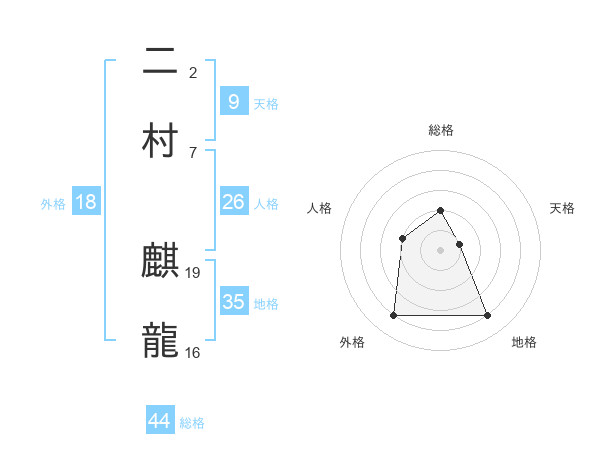 二村 麒龍さんの総格は44画の2点!