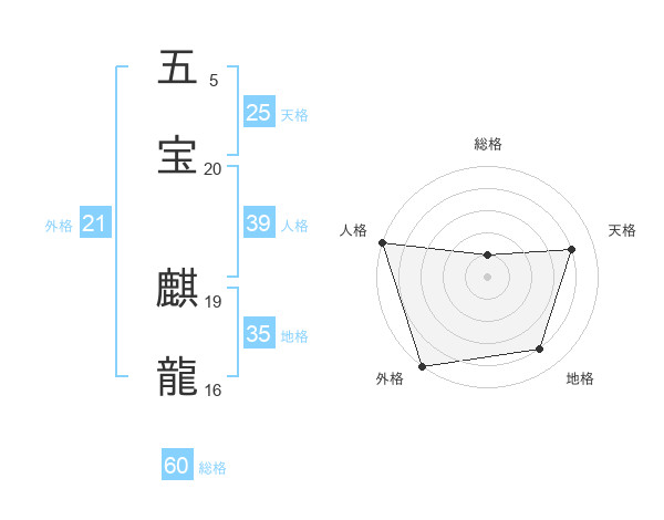 五宝 麒龍さんの総格は60画の1点!
