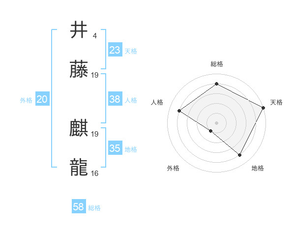 井藤 麒龍さんを姓名の画数から五運を鑑定