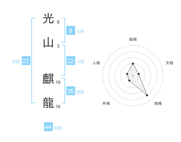光山 麒龍さんの総格は44画の2点!