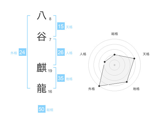 八谷 麒龍さんの総格は50画の2点!