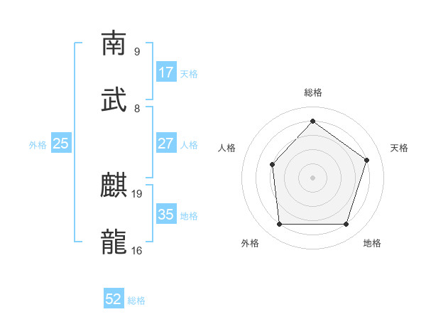 南武 麒龍さんの総格は52画の4点!