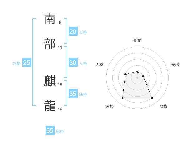 南部 麒龍さんの総格は55画の1点!