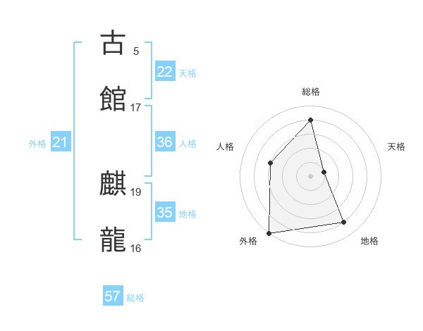古館 麒龍さんを姓名の画数から五運を鑑定