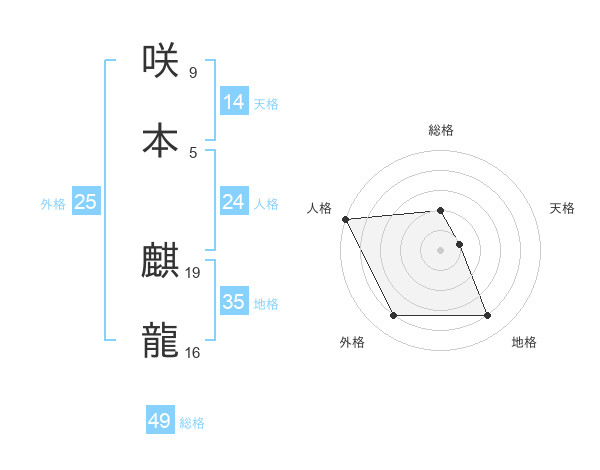 咲本 麒龍さんの総格は49画の2点!