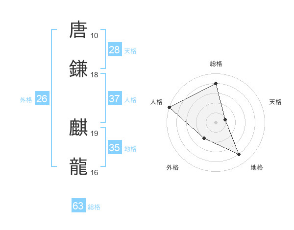 唐鎌 麒龍さんの総格は63画の4点!