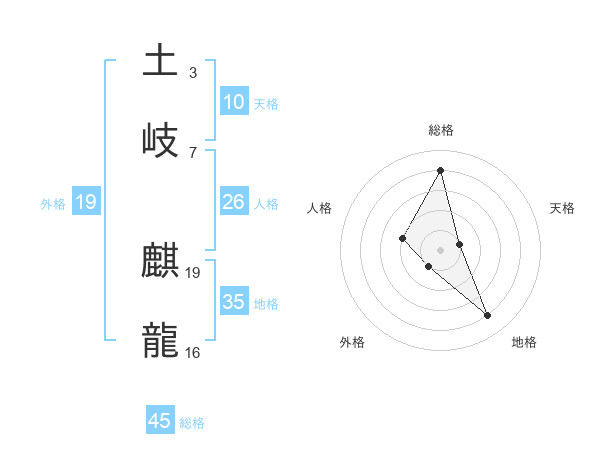 土岐 麒龍さんの総格は45画の4点!