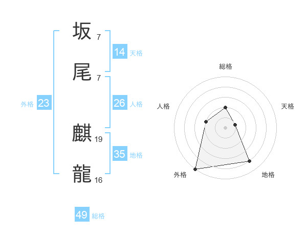 坂尾 麒龍さんの総格は49画の2点!