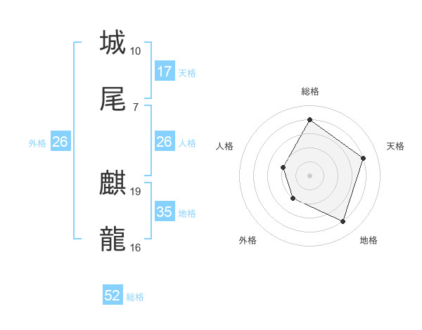 城尾 麒龍さんの総格は52画の4点!