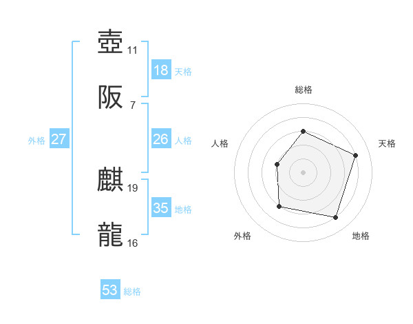 壺阪 麒龍さんを姓名の画数から五運を鑑定
