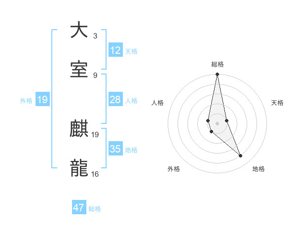 大室 麒龍さんを姓名の画数から五運を鑑定