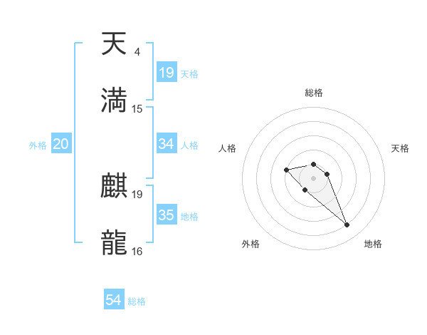 天満 麒龍さんの総格は54画の1点!