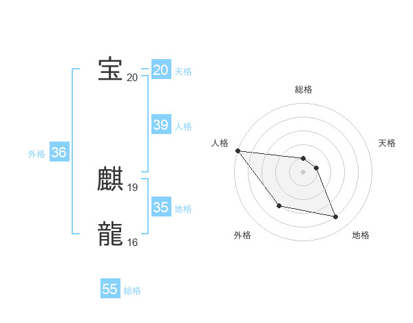 宝 麒龍さんの総格は55画の1点!
