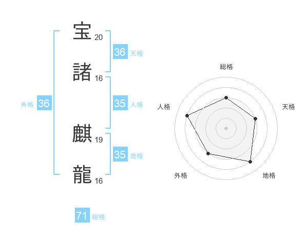 宝諸 麒龍さんを姓名の画数から五運を鑑定