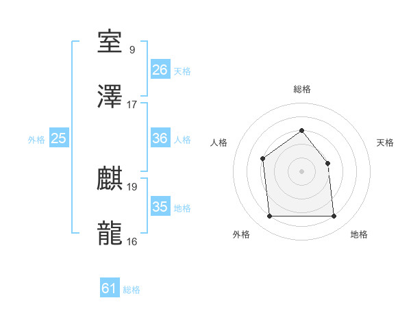 室澤 麒龍さんを姓名の画数から五運を鑑定