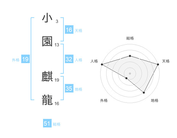 小園 麒龍さんの総格は51画の3点!