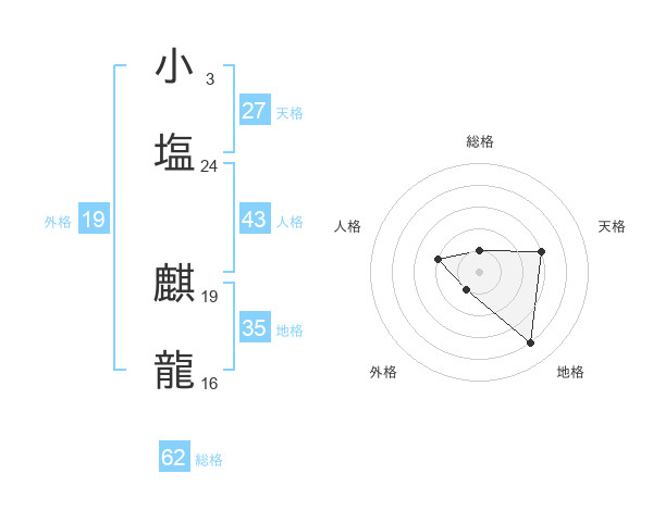 小塩 麒龍さんを姓名の画数から五運を鑑定