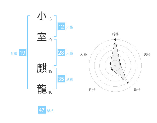 小室 麒龍さんを姓名の画数から五運を鑑定