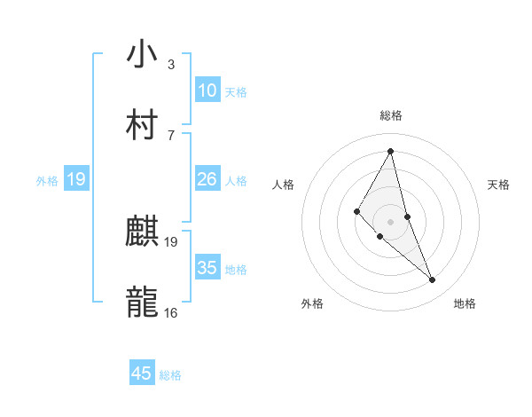 小村 麒龍さんの総格は45画の4点!