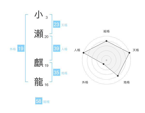小瀬 麒龍さんの総格は58画の4点!
