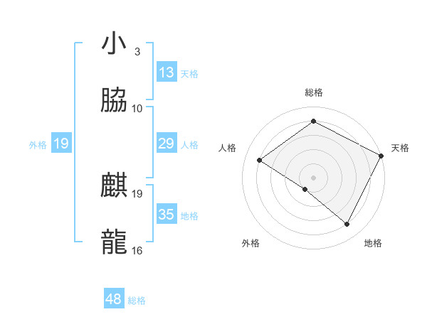 小脇 麒龍さんの総格は48画の4点!