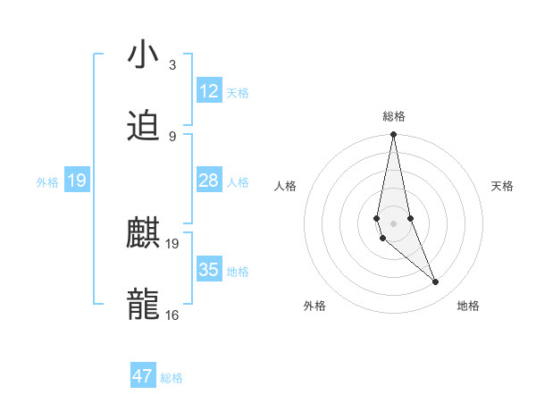小迫 麒龍さんの総格は47画の5点!