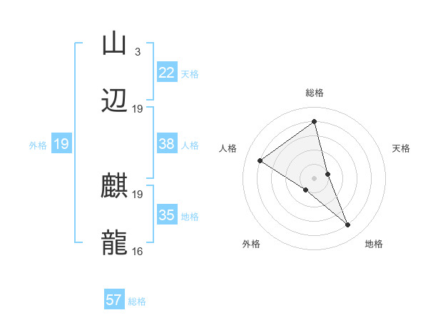 山辺 麒龍さんを姓名の画数から五運を鑑定