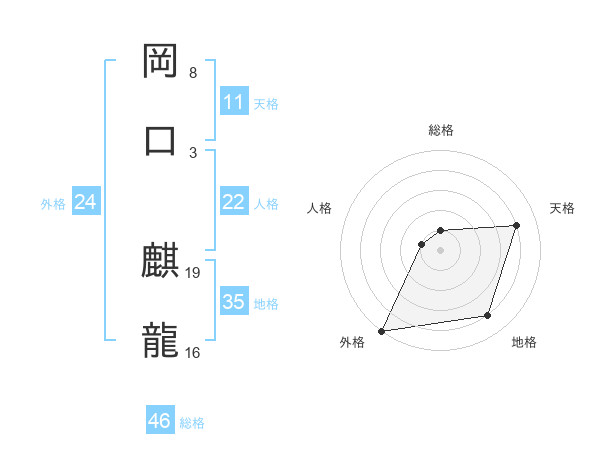 岡口 麒龍さんの総格は46画の1点!