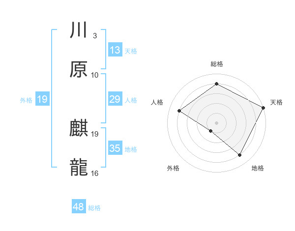 川原 麒龍さんの総格は48画の4点!