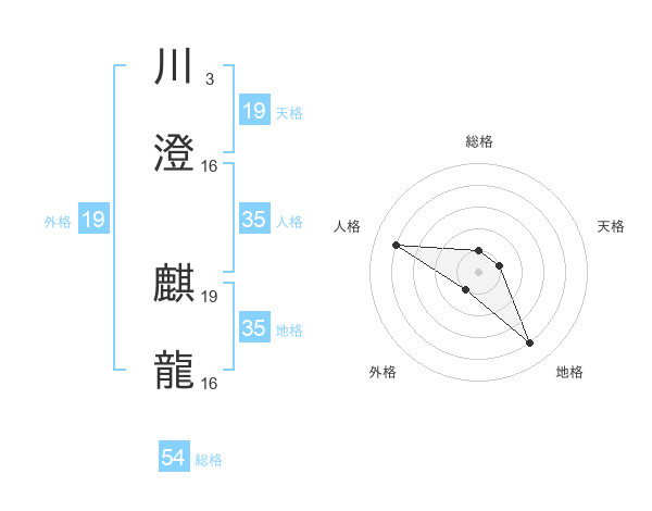 川澄 麒龍さんの総格は54画の1点!
