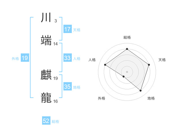 川端 麒龍さんの総格は52画の4点!