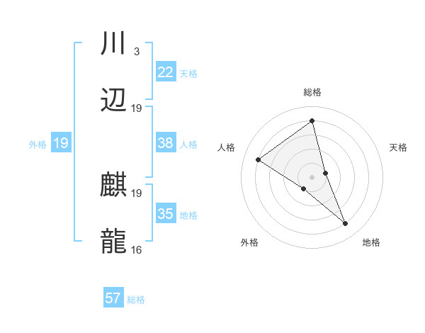 川辺 麒龍さんの総格は57画の4点!