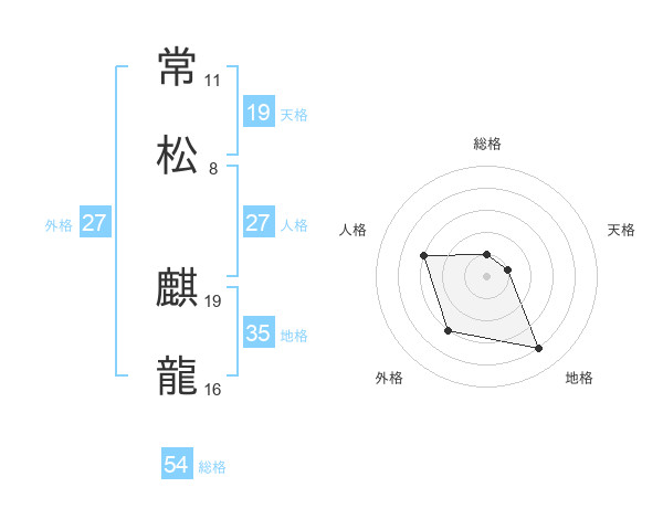 常松 麒龍さんを姓名の画数から五運を鑑定