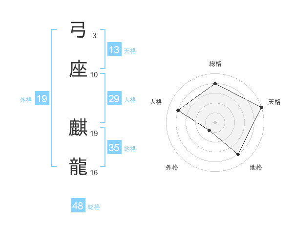 弓座 麒龍さんの総格は48画の4点!