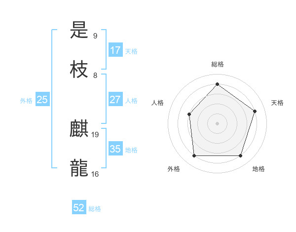 是枝 麒龍さんを姓名の画数から五運を鑑定
